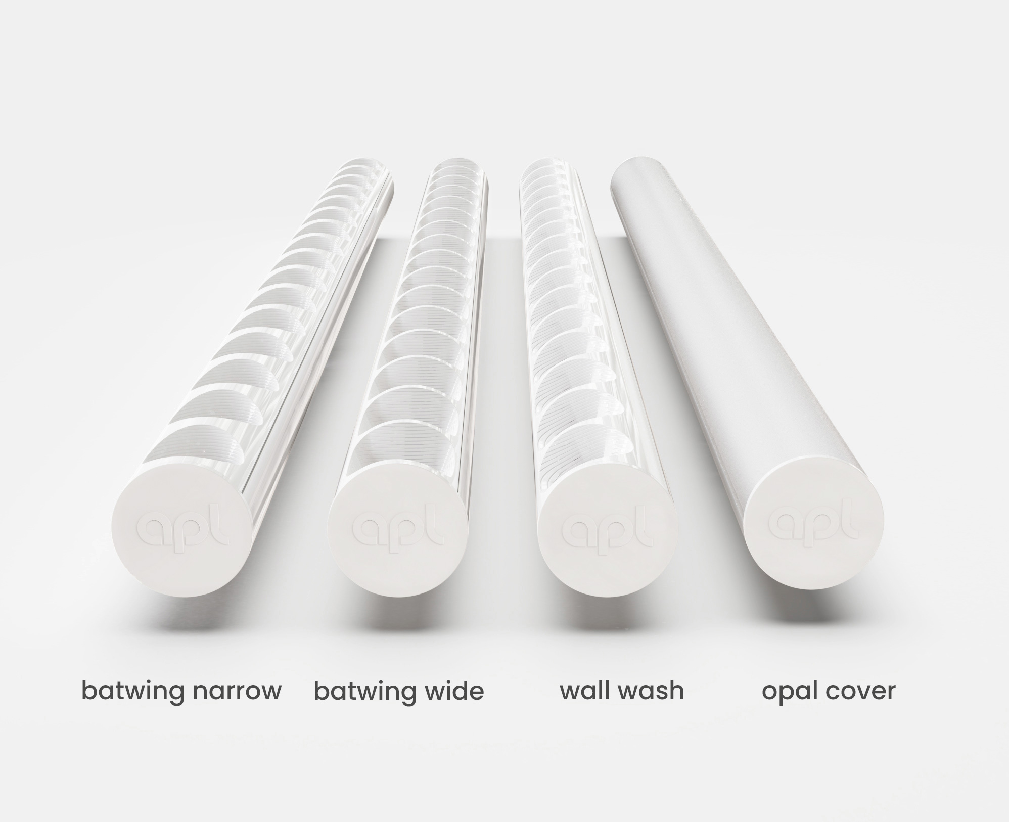 LTwo® comes in 4 basic looks and two colors. The looks are determined by the functional design of the optics/louver. Round louver: 10°, 13°, 25°, 40°, Batwing Narrow (BWN), and oval optic (13° x 40°). Rectangular louver: 60° and Batwing Wide (BWW). Asymmetric louver: Wall Wash (WW). Round LTwo®: clear, diffuse, or opal cover.
